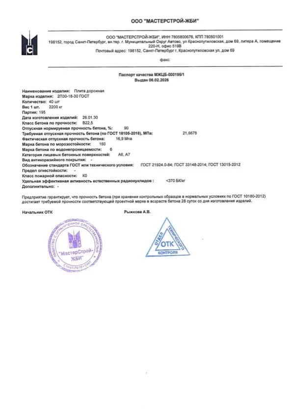 Группа компаний «МастерСтрой» производит железобетонные изделия с 2007 года. Производственная площадка расположена в Санкт-Петербурге на Парнасе (5-й Верхний пер., д. 13А) и рассчитана на выпуск 10 000 м³ ЖБИ ежемесячно. Полный цикл — от закупки сырья до отгрузки готовой продукции — находится под нашим управлением: собственный транспорт, собственная лаборатория, собственное производство бетона и химических добавок. Это позволяет гарантировать стабильное качество и выдерживать сроки даже на крупных объёмах.